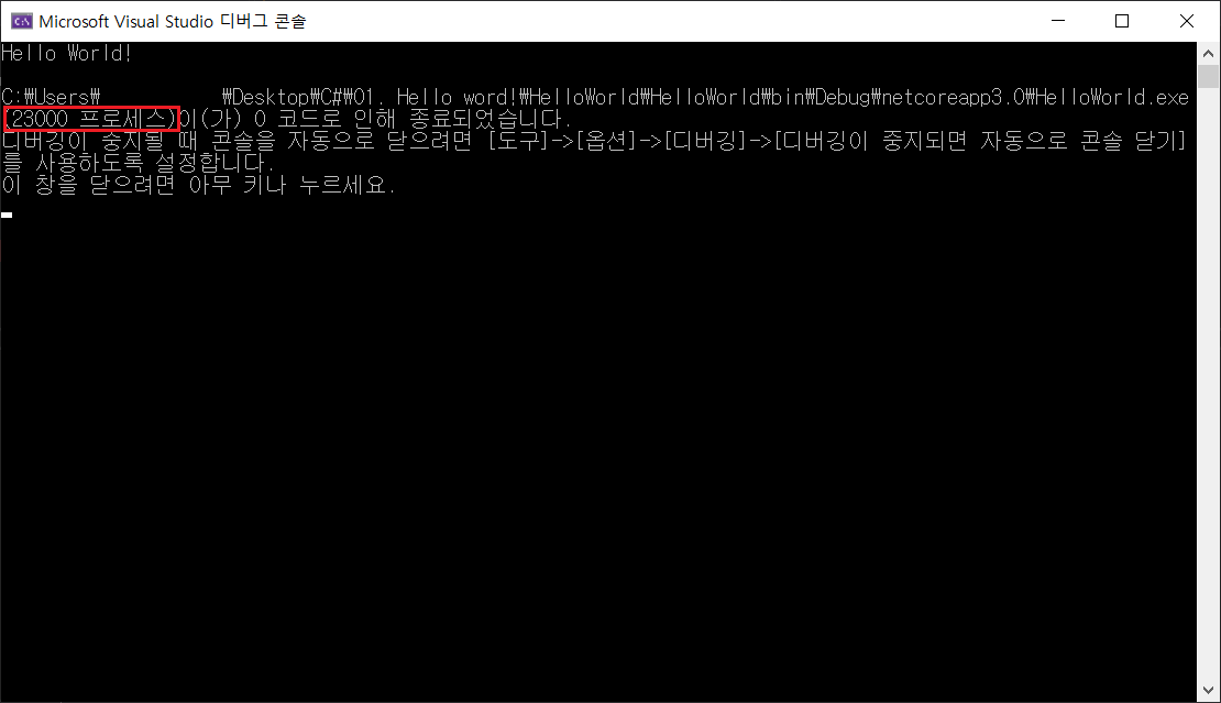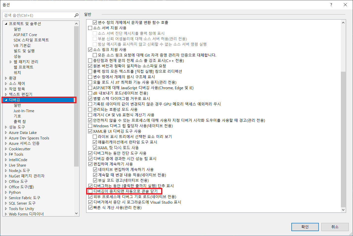 디버깅에서 나온 문구처럼 [도구] > [옵션] > [디버깅]에서 "디버깅이 중지되면 자동으로 콘솔 닫기"를 체크해줍니다.