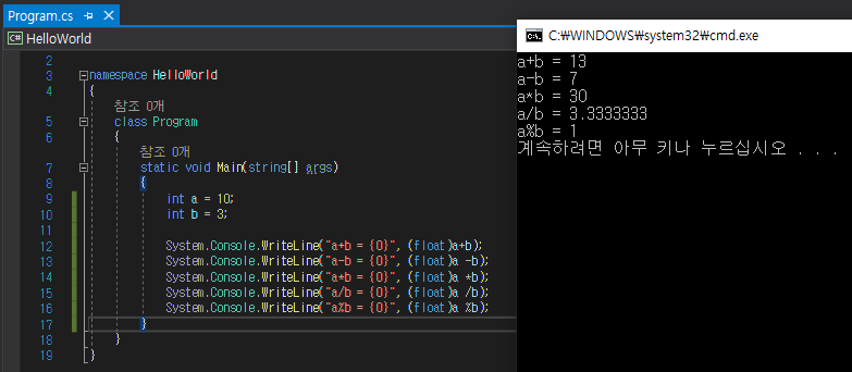 먼저 알아볼 연산자는 가장 기본적인 수식 연산자입니다.
