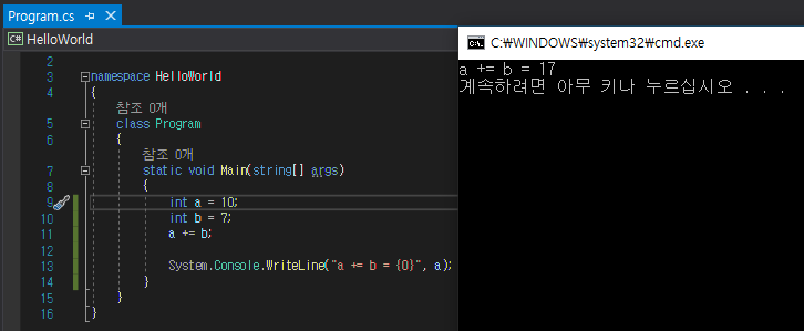 또한 이런 수식 연산자를 아래와 같은 방법으로 줄여서 사용할 수 있습니다.